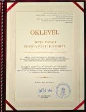 A Kultúráért és Innovációért Felelős Minisztere a Heves Megyei Népművészeti Egyesület, a Csoóri Sándor Program támogatottja részére, néphagyományok továbbadása iránti kiemelkedő elkötelezettsége elismeréseként oklevelet adományozott. Az Egyesület példaértékű nemzetépítő munkájával élővé teszi a magyar népművészeti hagyományokat. Megőrzi és gyarapítja szellemi, tárgyi kulturális örökségünket az eljövendő nemzedékek számára.