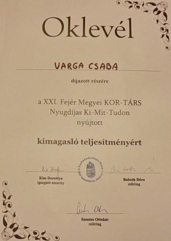 Varga Csaba alkotását elismerő oklevéllel jutalmazták.