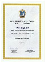 A Heves megyei Népművészeti Egyesület egri népművészeinek, kézműveseink, népművészeti értékei „Eger élő népművészete” címmel bekerült az egri Települési Értéktárba 2014. jun. 4-én.