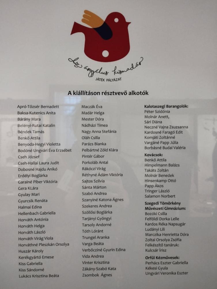 Egyesületünk két alkotója Erdélyi Boglárka és Tóth Lóránt fafaragó népi iparművész nevezett be a pályázatra. Alkotásaik Kecskeméten a Katona József Múzeum Népi Iparművészeti Gyűjteményében megrendezett kiállításon 2025. február 28-ig láthatóak.