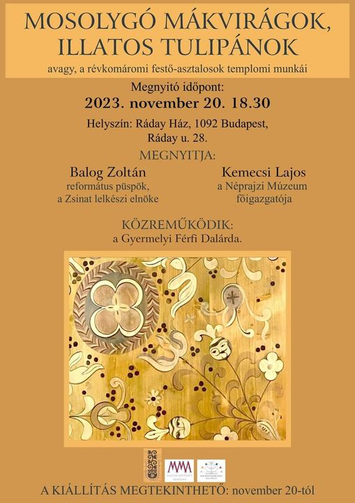 A népi iparművészet hagyományait ébren tartó kiállítás nyílt a budapesti Ráday Házban. Ament Éva bútorfestő szakoktató tanítványaival együtt lehelt életet a révkomáromi festő-asztalosok templomi munkáiba.
