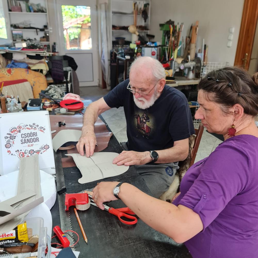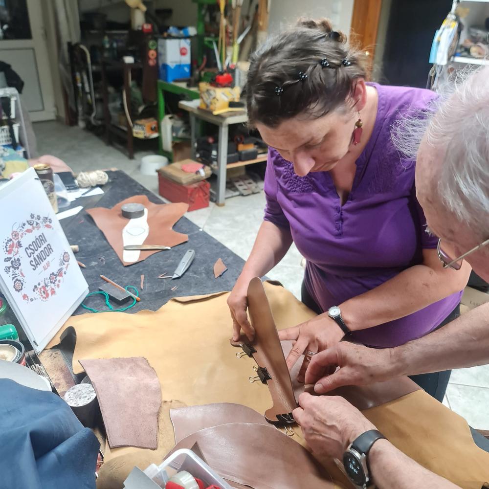 A tiszafüredi Bőrműves Alkotóházban Horváth Tibor népi iparművész, a Népművészet Mestere és Horváth Tiborné Gránátalma-díjas népi iparművész adja át tudását .