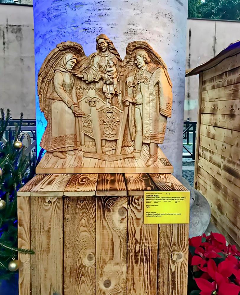 Kiss István alkotásai már több ízben is szerepeltek Rómában. 2011-ben a járomkeretbe foglalt betleheme a Pantheonban volt kiállítva, 2019-ben a teknő betlehem szerepelt a 100 Jászol kiállításon, most pedig 2021-ben az Angyali üdvözlet , melynek alcíme „A Magyar Szent Család”.