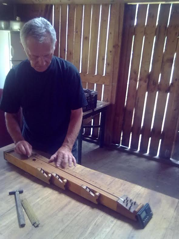 A kéthetes táborban az alkotók egymástól is tanulnak. Tóth Lóránt fafaragó például a citerakészítő mestertől igyekszik elsajátítani a népi hangszerkészítés titkát.