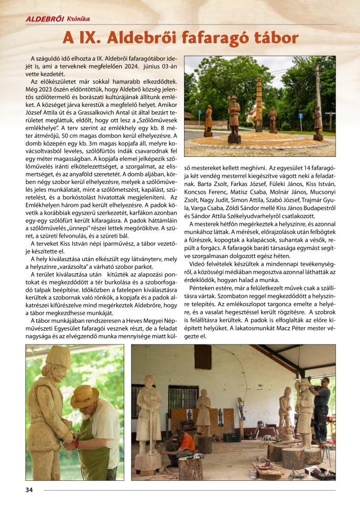 Megjelent az Aldebrői Krónika 2024 téli száma, benne a IX. Aldebrői fafaragótáborról írt cikkel.