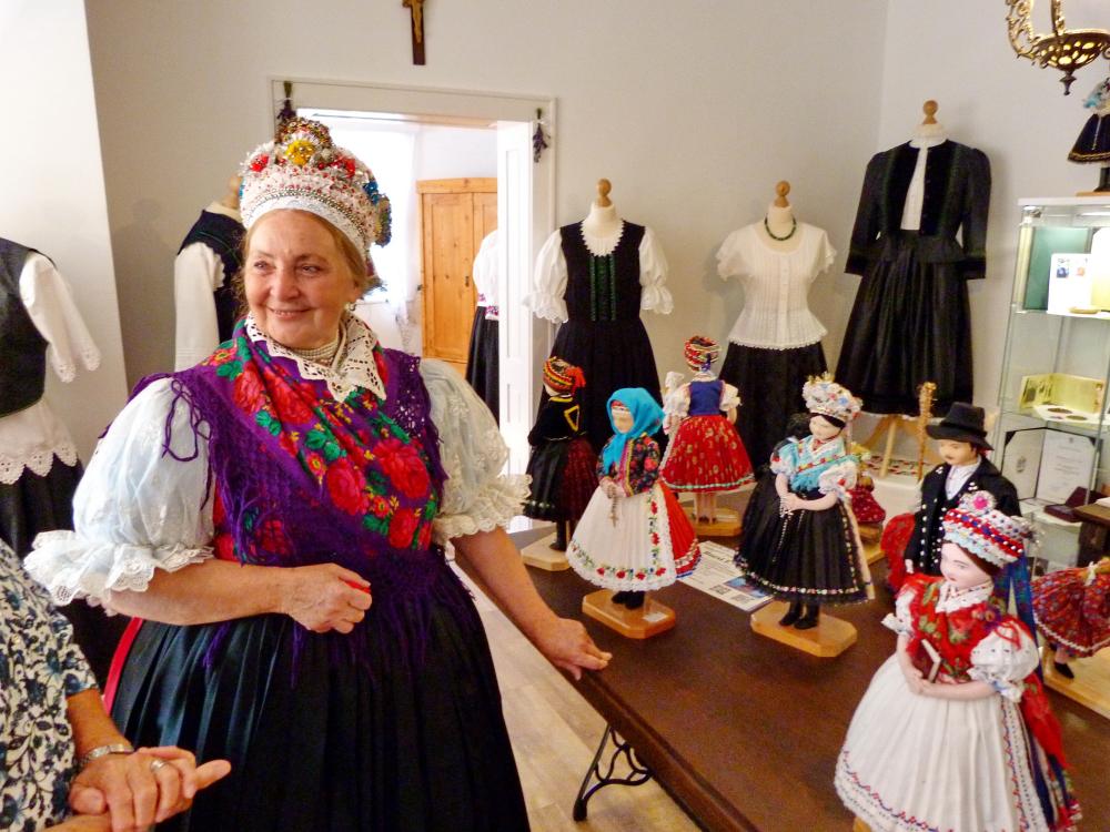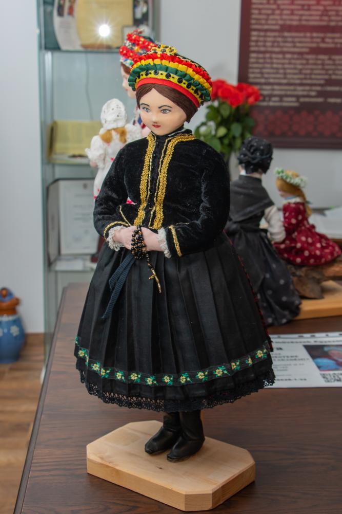 A babáin keresztül bemutatja, mit viseltek Kazár, Vizslás térségében az elmúlt két évszázadban, valamint a megnyitón a tárlatvezetése során mesélt a palóc hagyományokról, a kiállított alkotásokról, azok készítéséről és a különböző jelenetek ábrázolásáról.