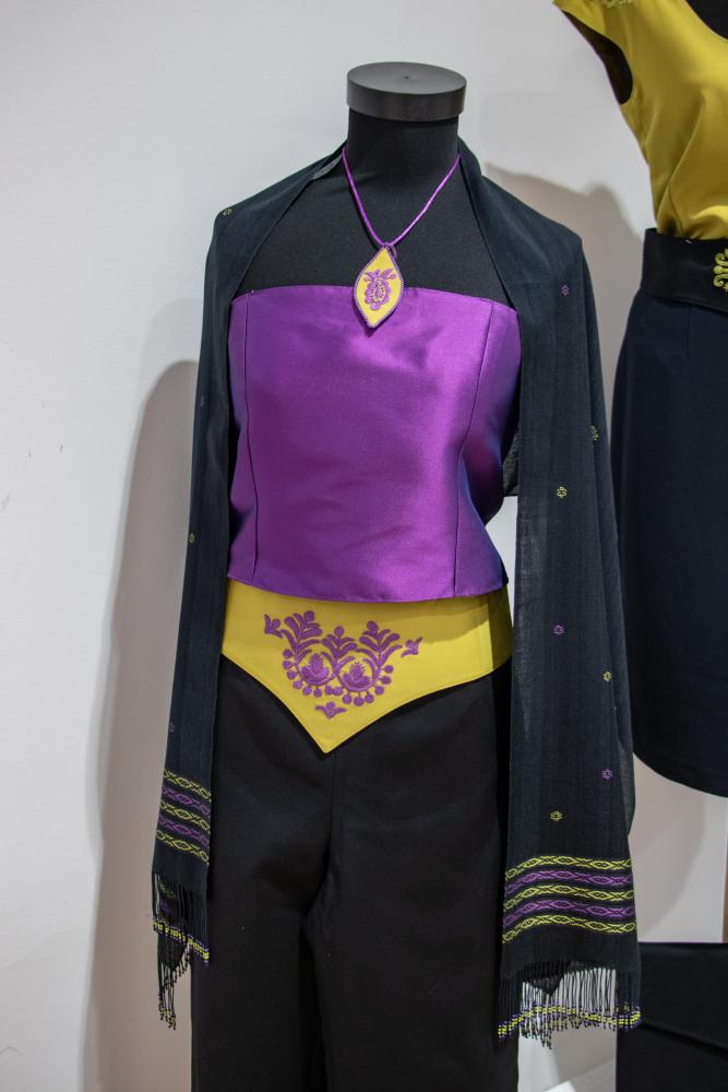 A színvilágában is különlegesek a drávaszögi hímzéssel díszített, jól variálható a mai modern nő számára készült öltözetek.
