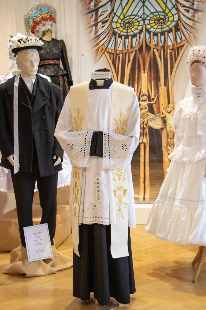 A kiállítás látvány tervét Kiss István a Heves megyei Népművészeti Egyesület Elnöke álmodta meg. Az ünnephez, esküvői témakörhöz kapcsolódva 3 templom látványa jelenik meg a kiállító térben. Az egyik templom Katolikus templom, ahol a hagyományos menyasszonyi öltözetek jelennek meg. Az 1920-as években még fekete menyasszonyruhát viseltek a menyasszonyok. Nagy öröm, hogy a kiállításon fekete matyó-, valamint debreceni menyasszonyi viselet is látható. Ezen kívül nagydobronyi fehér menyasszonyi viselet Kárpátaljáró, gombosi- és temerini a Vajdaságból. A menyasszonyok körében a jász vőlegény áll, valamint egy höveji hímzéssel díszített papi ruhában a Katolikus pap állt.