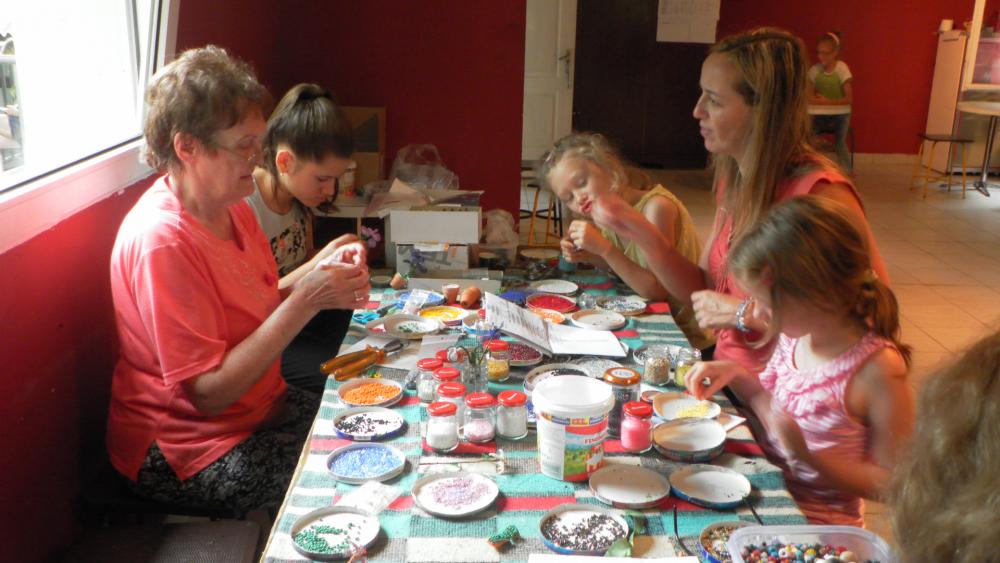 A kézműves foglalkozások témája : szövésl, kézi fonás (3 féle), hímzés, gyöngyfűzés, batikolás, nemezelésl, kosárfonás, bábkészítés textilből és csuhéból, illatos zsákocskák készítése 12 féle gyógynövényből, volt üvegfestés, rózsa és szélcsengő készítése kerámiából.