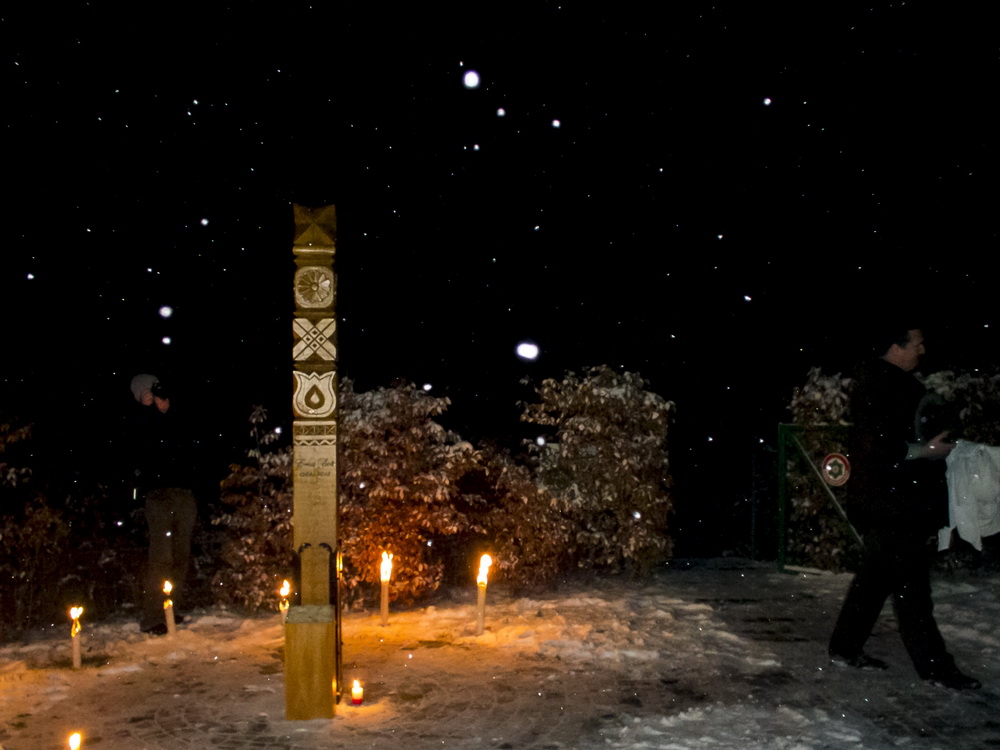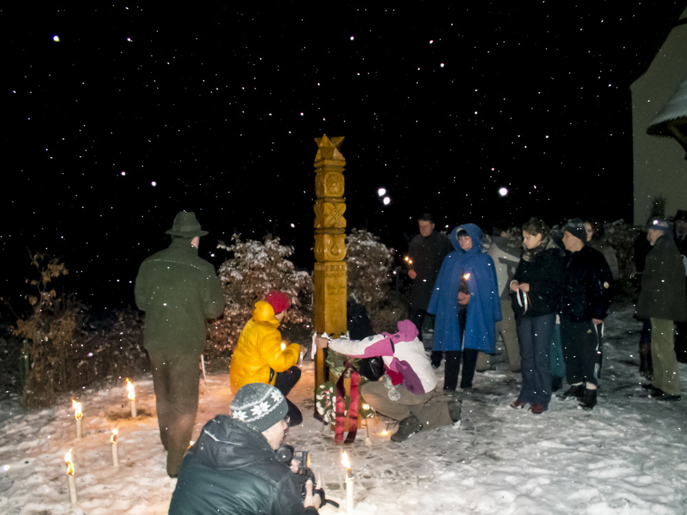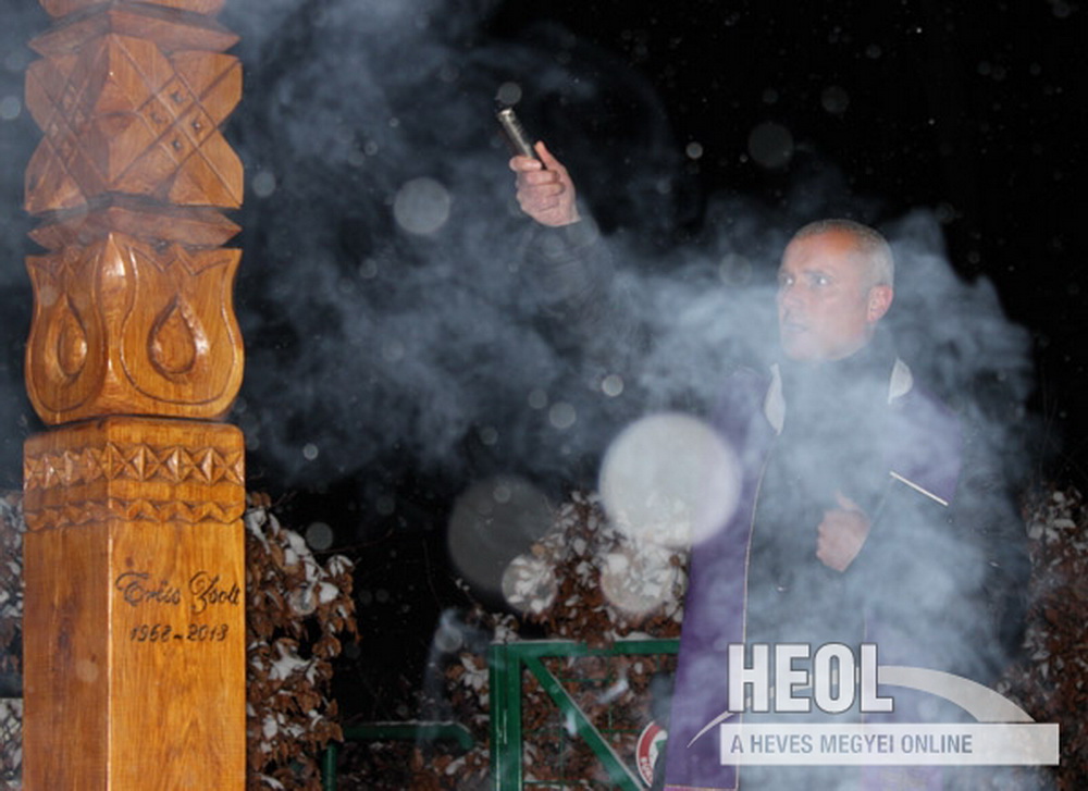 Az emlékhelyet meg is áldották, az összegyűltek gyászszalagot kötöttek a kopjafára, s elhelyezték az emlékezés koszorúit, illetve gyertyáit.