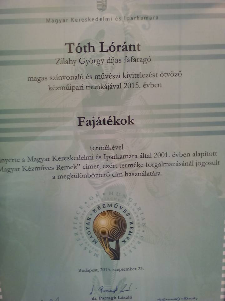 1. Tóth Lóránt  fafaragó , fajátékaiért külön kiemelésre is került.