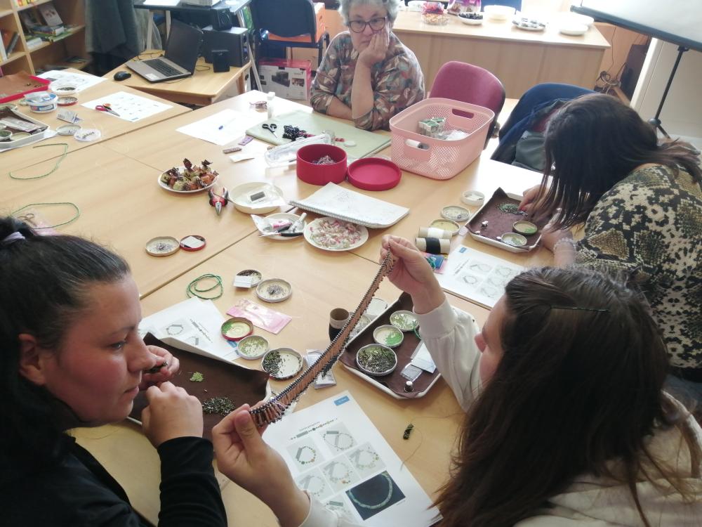 Ilyen mentoráláson vett részt Mazánné Balogh Anna gyöngyfűző Tenken, 2023. május 15-én. A szakkörben 6 fő ismerkedik a gyöngyfűzéssel. A szakkör vezető és a tagok a szalmás gyöngyhurka és a herringbone karkötő elkészítéséhez kértek segítséget, illetve a addigi munkák során felmerült technikai megoldásokról kérdezték a mentort, , mint például a munka kezdése, szál feszítése, a fűzőszál toldása, anyagok, segédanyagok használata. A szakkörvezető visszajelzése szerint hasznos új dolgokat tudtak meg amit azóta munkájuk során sikerrel ki is próbáltak.