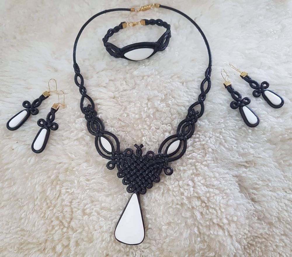 Így összességében készült egy csontberakásos nyakék, egy csontberakásos karkötő, 2 pár csontberakásos fülbevaló, 1db hengeres bőrből készült kétszálas, és egy háromszálas karkötő.