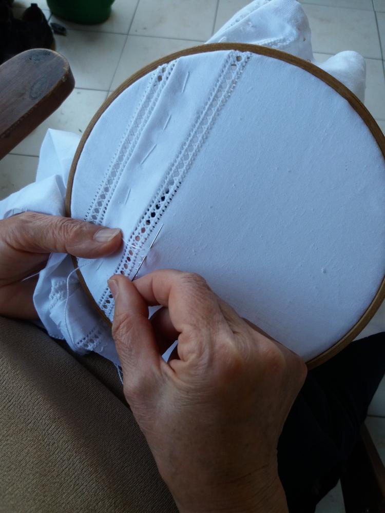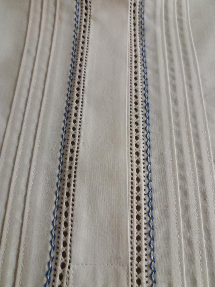 A Mester és Inas program alatt elkészült egy palóc, fedémesi kézi hímzéssel és borsókával díszített szuka ingváll, ami ünnepi alkalomra viselhető. Amíg Rebeka otthon gyakorolta a mesterke és borsókavarrást addig én a hímzett ingváll ujjára, valamint a gallérra ráhorgoltam a csipkét, kimostam és kivasaltam az elkészült ingvállat.