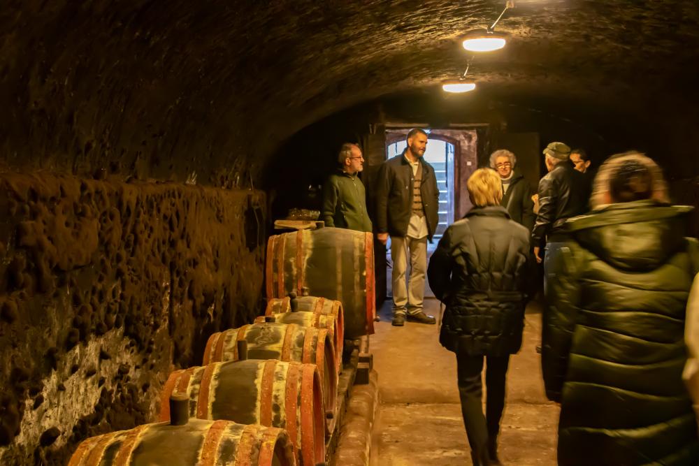 A templomot övező temetőkertben a helyi kőfaragók jeles munkáival ismerkedtünk meg. A kőkultúra meghatározó a falu életében. A templom és házak, kerítések, keresztek, hidak építése mellett több pincesor is hirdeti a bogácsi kőkultúra becses hírét. Utunk során megtekintettük ezeket és végül ellátogattunk Bogács egyik legszebb, talán leglátványosabb, de kevésbé ismert pincesorára, a Csecslyuki pincesorra, mely több emelete, faragott kővel kirakott pincéi feledhetetlen élményt adnak a látogatóknak. Itt a háborús élet viszontagságairól, és a szőlőkultúráról tartott előadást a tulajdonos.