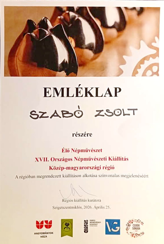A Heves Megyei Népművészeti Egyesület  két tagja, Balogi Gitka és Szabó Zsolt ide adták be pályamunkáikat. Balogi Gitka kékfestőből készült  ruhái , (melynek  kékfestő alapanyagát Sárdi János készítette), és Szabó Zsolt  fafaragásait ítélte a zsűri kiállításra méltónak.  Ezúton is nagy örömmel gratulálunk az elért eredményekhez.