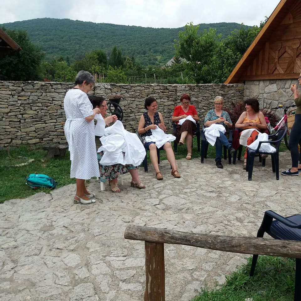 15 fő, asszonyok, leányok az ingváll kiszabása után hozzá fogtak az anyag szálának a kihúzásához. Mindenki ügyes és türelmes volt. Sosem volt még ehhez hasonló alkotásban részük.