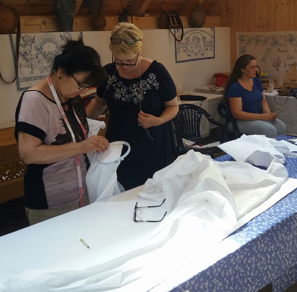 A néprajzi elméleti ismeretek után kézbe vettük az anyagot, kezdődött a gyakorlati munka. Mindenki azonnal megszerette az ingvállat, hiszen kellemes volt viselni, jó érzés volt számukra, hogy belebújhattak egy palóc húzott ujjú ingvállba, amit én készítettem. Természetes volt, hogy mindenki szeretne magának egy ilyen ingvállat.