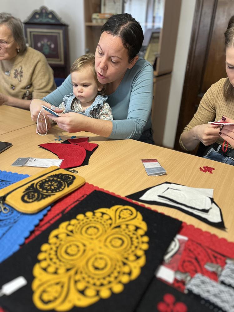 Torba Ildikó szűrrátét készítő népi iparművész a Barkó Kézműves Egyesület meghívására Ózdon tartott kézműves foglalkozást október végén. A Művésztanya a Hagyományok Háza hálózati programjának keretében fontosnak tartja, hogy új mesterségekkel ismerkedjenek meg a tagjai. Ildikó egy mini kiállítás keretében mutatta be néhány munkáját, szűrrátétes ruhákat, ékszereket és táskákat, mesélt a szűrről, szűrrátétről. A gyakorlati foglalkozás keretében pedig mindenki elkészítette a saját nyakékét, fülbevalóját és akasztós díszét is. A csendes, elmélyült munka után színes, látványos ékszerekkel távoztak a program boldog résztvevői.