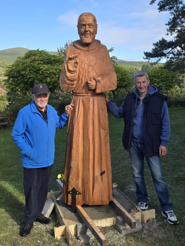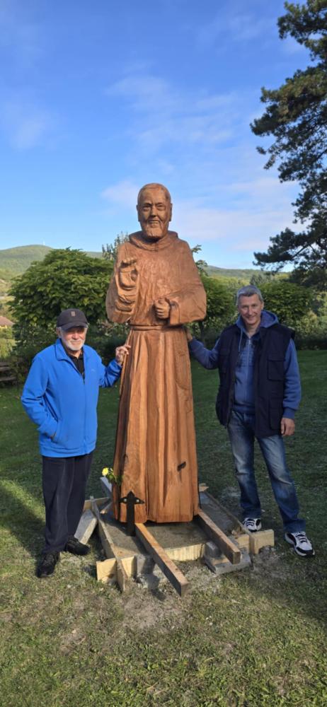 A füzérradványi templom udvarában két éve állították fel Szent II. János-Pál szobrát melyet Kiss János és Simon Attila fafaragók készítettek el. Most ismét felkérték a mestereket, hogy alkossák meg Szent Pió szobrát. Az összeszokott páros közösen faragta ki a 230 cm magas szobrot, melyet a templom búcsúján avattak fel.
