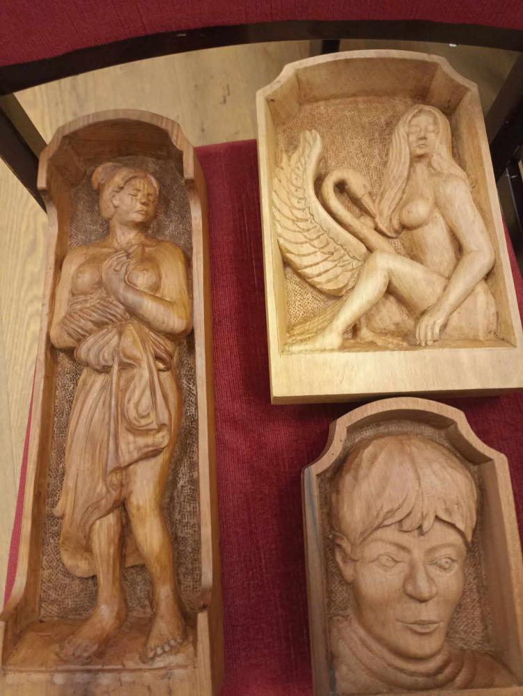 Egyesületünket Balatoni Tibor, Dr. Koncsos Ferenc, Molnár János és Szabó József fafaragók alkotásai képviselik